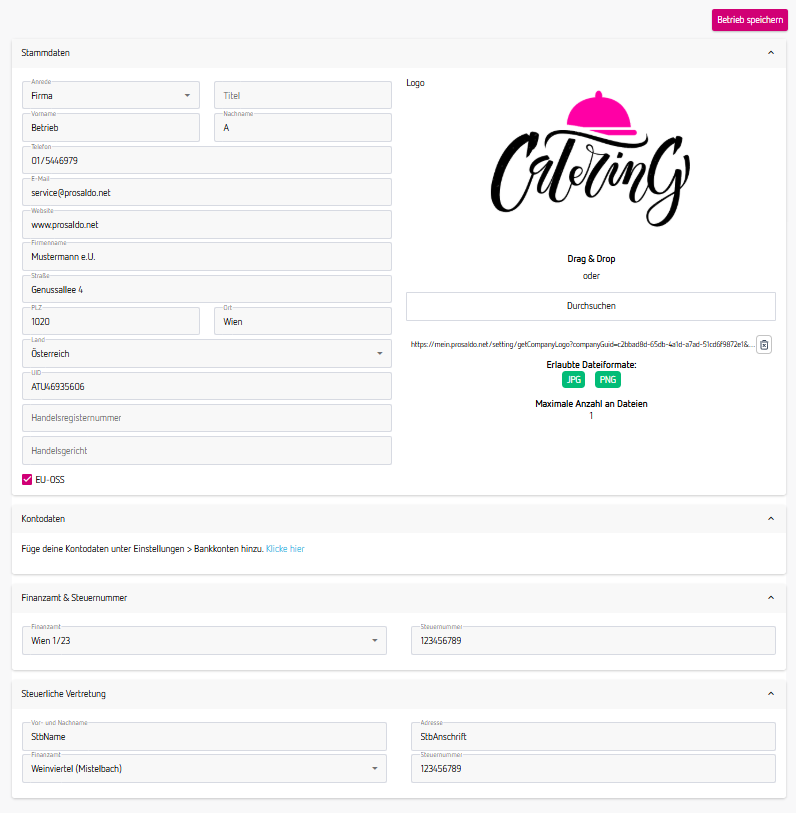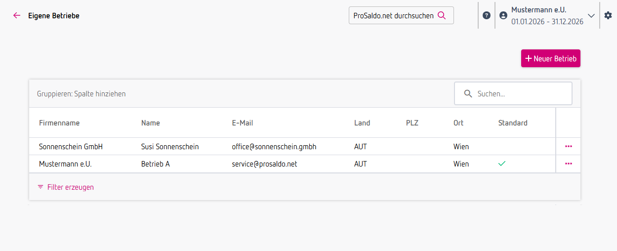 Hinweis: Ob du weitere Betriebe anlegen kannst, hängt von deinem ProSaldo.net Vertrag ab!